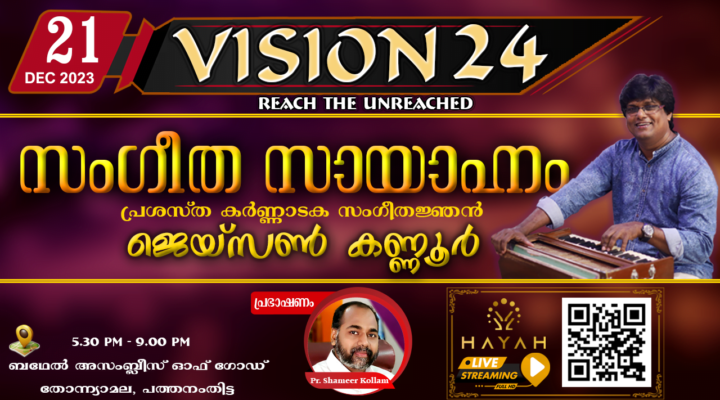Vision 24 Live Music Concert Live Music with Jaison Kannur & Public Address by Pr. Shameer Kollam at Thonniamala Bethel Assemblies of God Church, Thonniamala