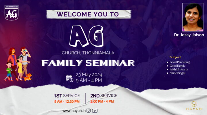 Family Seminar – Dr. Jessy Jaison @Bethel AG Church Thonniamala – Evening Session The seminar’s goal is to raise awareness among parents and kids about the difficulties they confront on a daily basis.